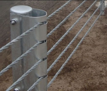 熱鍍鋅五索纜索具有成套配件均采用熱鍍鋅處理耐腐朽,抗老化,免去二次油漆工序,使用壽命長等特點。被廣泛用於高速公路、鐵路、橋梁兩側的防護帶:機場、港口、碼頭的安全防護。
