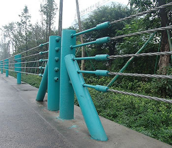 纜索小黄鸭视频导航是柔性小黄鸭视频导航的主要代表形式,它是一種以數根施加初張力的纜索固定於立柱上而組成的結構,它主要依靠纜索的拉應力來抵抗車輛的碰撞,吸收碰撞能量。