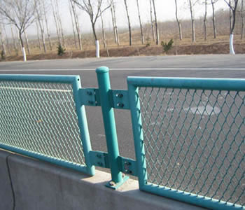橋梁防眩網的金屬卡子連接,其所用螺絲均為自動防盜的、配件可按照客戶的不同要求具體設計。其規格是采用2.0-3.0mm低碳鋼板衝壓而成並進行浸塑(也可熱鍍、電鍍、噴塑)處理,寬*長(mm):500*4000;網孔(mm):50*100 ;浸塑厚度(mm):0.7-1.0 。衝壓異型管,支柱(mm):60cm與75cm圓管(帶底盤),柱的尺寸與壁厚可以定做也可定做其它規格!