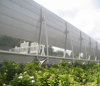 隔音屏障主要用於高速公路、高架複合道路、城市輕軌地鐵等交通市政設施中的隔聲降噪、控製交通噪聲對附近城市區域的影響,也可用於工廠和其它噪聲源的隔聲降噪。